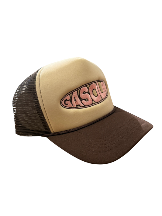 Gasoline USA Oval Trucker Hat TAN/BRWN/PINK colorway